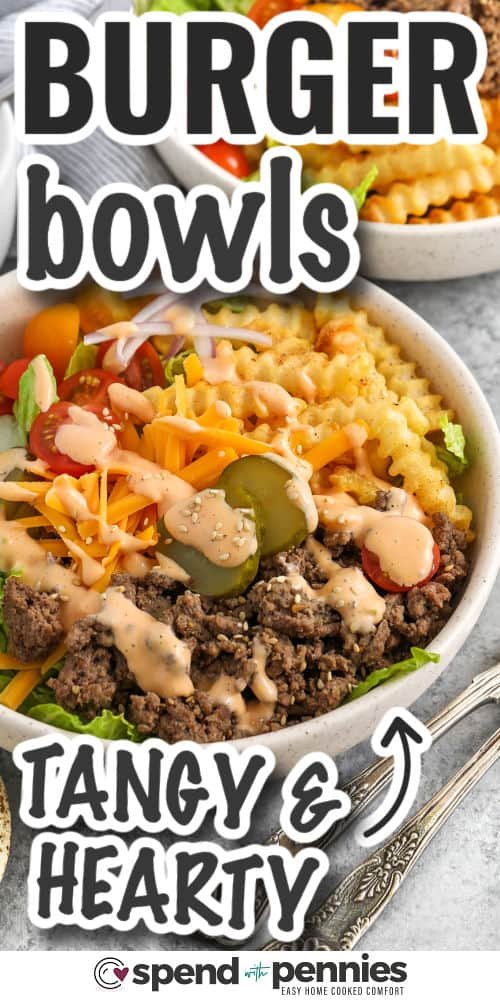 These burger bowls are a fun, crave-worthy twist on a classic cheeseburger, with no bun required. Loaded with seasoned beef, crispy fries, and all your favorite toppings, they are the perfect easy weeknight dinner.