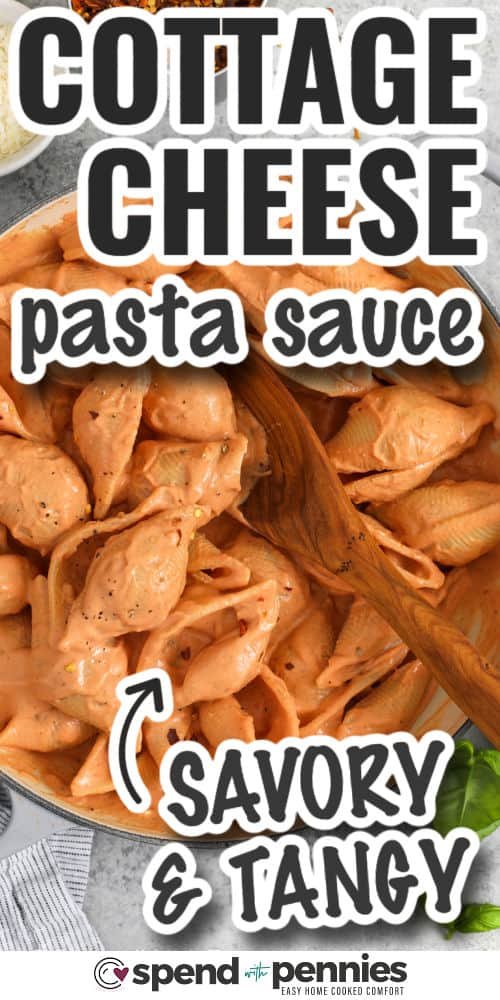 smooth and creamy Cottage Cheese Pasta Sauce with writing