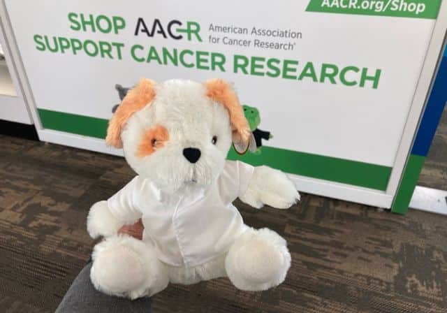 Today’s dog of the day is Gene the Lab Dog, who has big dreams of one day getting to present at the AACR Annual Meeting. Having donned the world’s tiniest lab coat, he is all ready to make discoveries of his own! If you’d like to help him start his scientific journey, stop by the AACR Shop, located outside the Sails Pavilion.