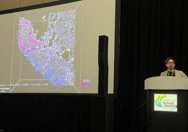 Hwang demonstrated his lab’s technology: a multi-AI-agent-augmented live imaging system for gauging drug dynamics and effects within an individual patient’s tumor. Rather than a single model, several AI agents work together to analyze different aspects of tumor biology, drug dynamics, metastatic potential, and downstream treatment responses.