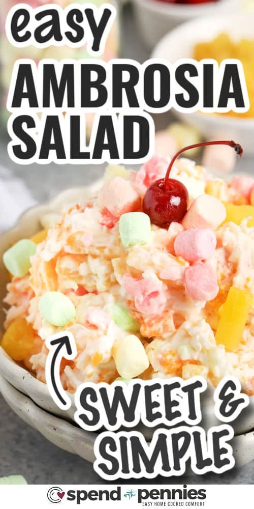 Ambrosia means ‘food of the gods’, and this version is a family favorite. While it’s called a salad, ambrosia salad is more like a light, creamy dessert that often makes an appearance as a side dish during the holidays. This version has pineapple, coconut, mandarin oranges, and mini marshmallows all folded together in a sweet, creamy base.