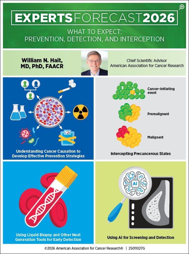 One question that Hait, former global head of Janssen Research and Development and AACR Chief Scientific Advisor, had heard many times from his cancer patients in his 30 years of practicing medical oncology before his tenure in industry was, “I didn’t smoke, I didn’t drink, no one in my family has cancer. What could I have done to prevent this?” That simple yet profound question sets the tone for his forecast: In 2026, the field needs to move upstream—toward understanding causation, studying interception, and sharpening early detection—while policy begins to reward prevention.