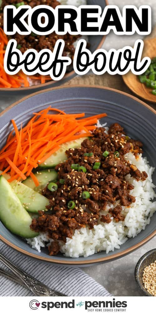 bold and flavorful Korean Ground Beef Bowls with writing
