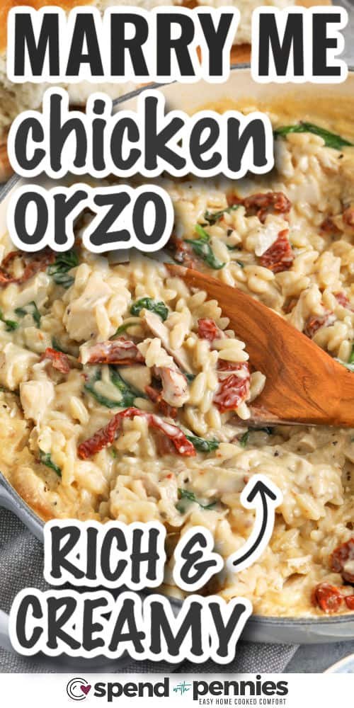 Marry Me Chicken Orzo is creamy, cozy, and cooked in one pan. Tender orzo simmers in a rich cream sauce with savory Mediterranean ingredients for an easy skillet dinner. Every bite is full of that classic “Marry Me” flavor.