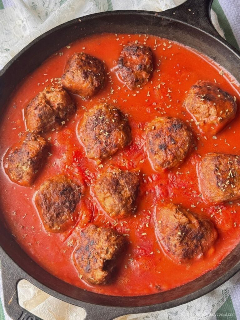 You can easily swap out the ground beef for ground turkey or even ground chicken. You can use regular rice instead of instant, but you will need to cook the rice first and use the cooked rice in the meatballs. You can add any seasonings your family likes, such as basil and oregano. We like the recipe as it’s written and have it enjoyed this for many years. We love it served over pasta, rice or just as meatballs with a salad and baked potato. These also make a wonderful meatball sub, add them to a sub roll and top with cheese!