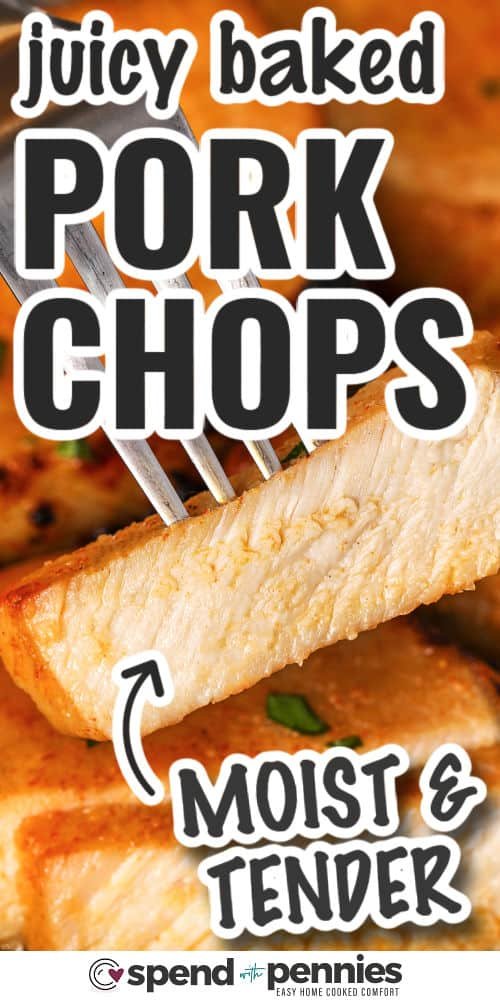 juicy and flavorful Juicy Baked Pork Chops with writing