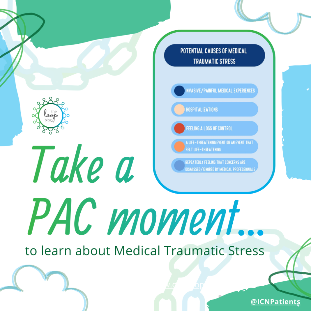 @ICNPatients collaborated with the ICN Social Workers & Psychologists (SWAP) group to create and share information about medical traumatic stress, including common symptoms, potential causes, coping strategies, advocacy statements, and a resource list. Take a PAC Moment to learn about medical traumatic stress from the patient perspective.