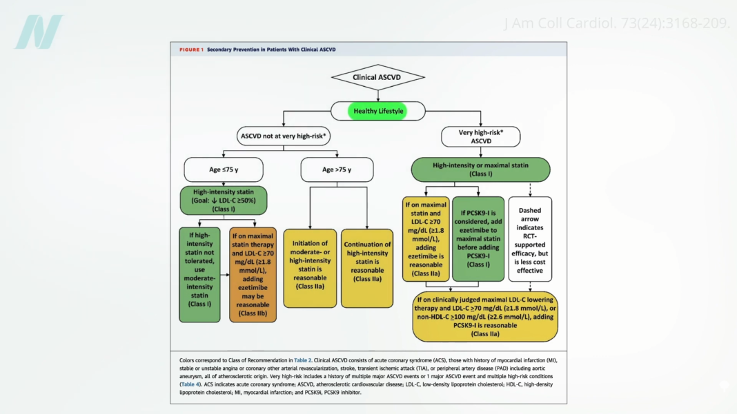 If you look at the clinical guidelines for what we should do for our patients with regard to our number one killer, atherosclerotic cardiovascular disease, all treatment begins with a healthy lifestyle, as shown below and at 1:50 in my video Hospitals with 100-Percent Plant-Based Menus.
